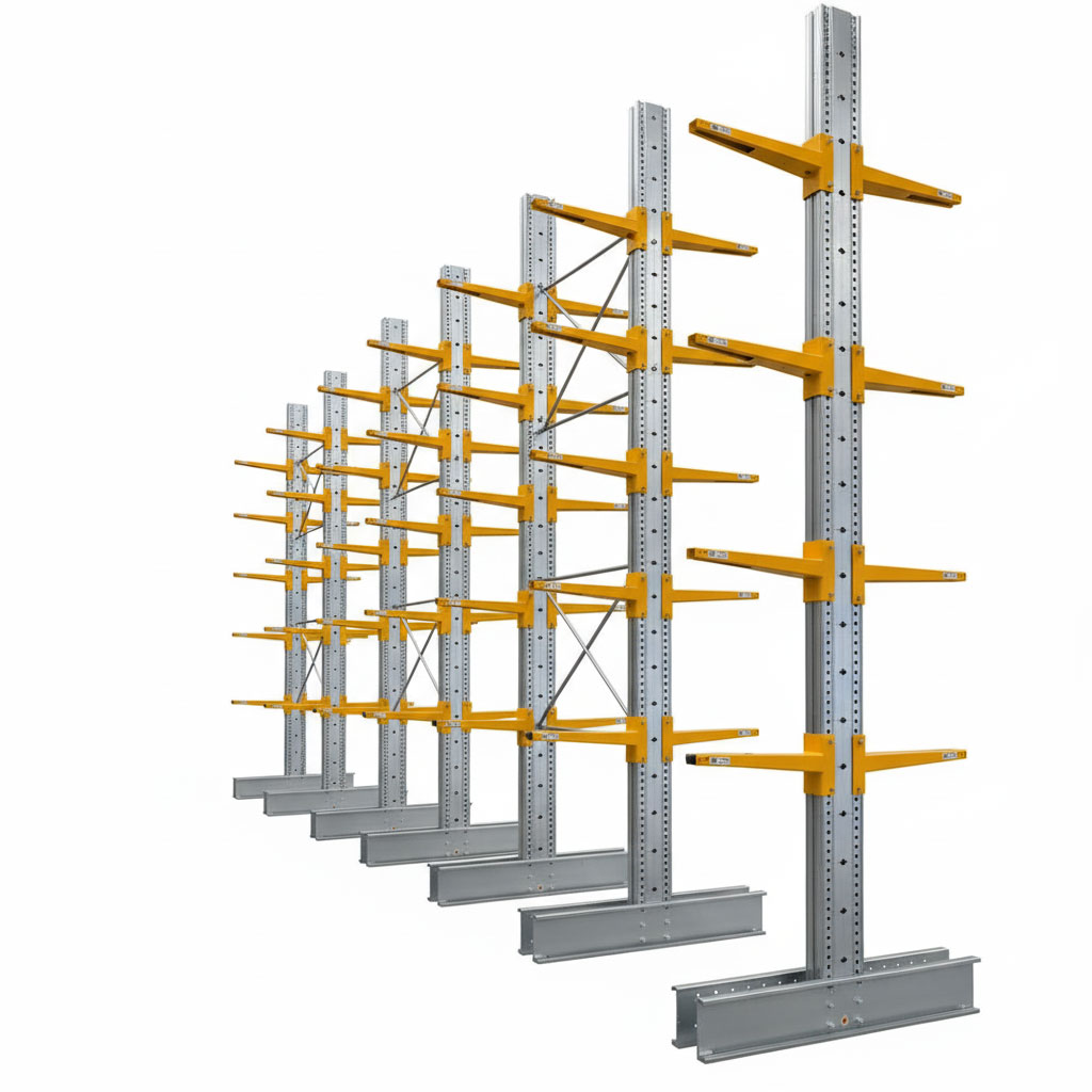 Le rayonnage cantilever est une solution de stockage modulable et robuste, spécialement conçue pour entreposer des produits longs, volumineux ou encombrants tels que des tubes, des profilés métalliques, des planches, des panneaux de bois ou des tuyaux. Grâce à sa conception innovante, composée de poteaux verticaux solides et de bras horizontaux en porte-à-faux, ce type de rayonnage permet un accès facile aux marchandises et optimise l’espace de stockage tout en garantissant une grande sécurité.