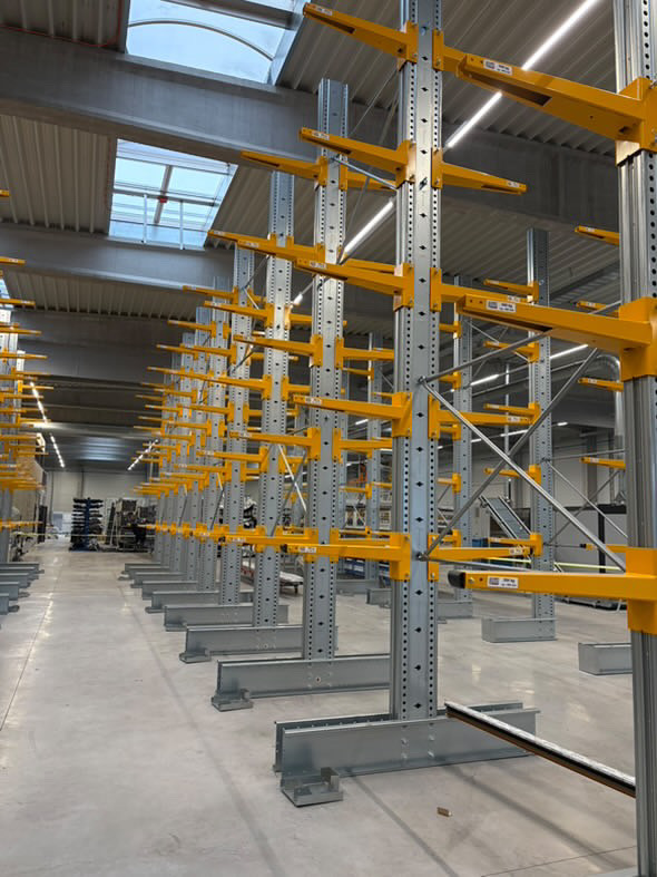 Le rayonnage cantilever permet de stocker facilement des produits longs ou encombrants comme le bois, les tubes ou les profilés métalliques, grâce à ses bras en porte-à-faux ajustables. Cette conception offre un accès direct et rapide aux marchandises, tout en optimisant l’espace et en garantissant sécurité et robustesse dans tous les environnements industriels.